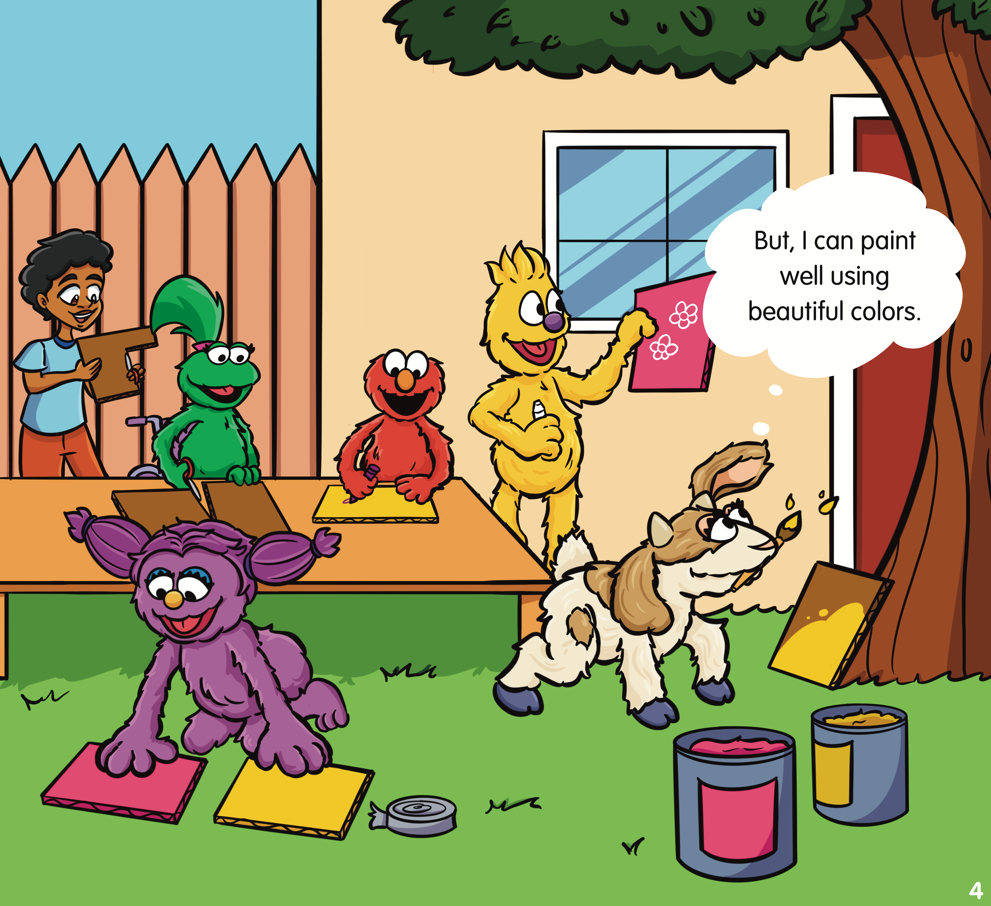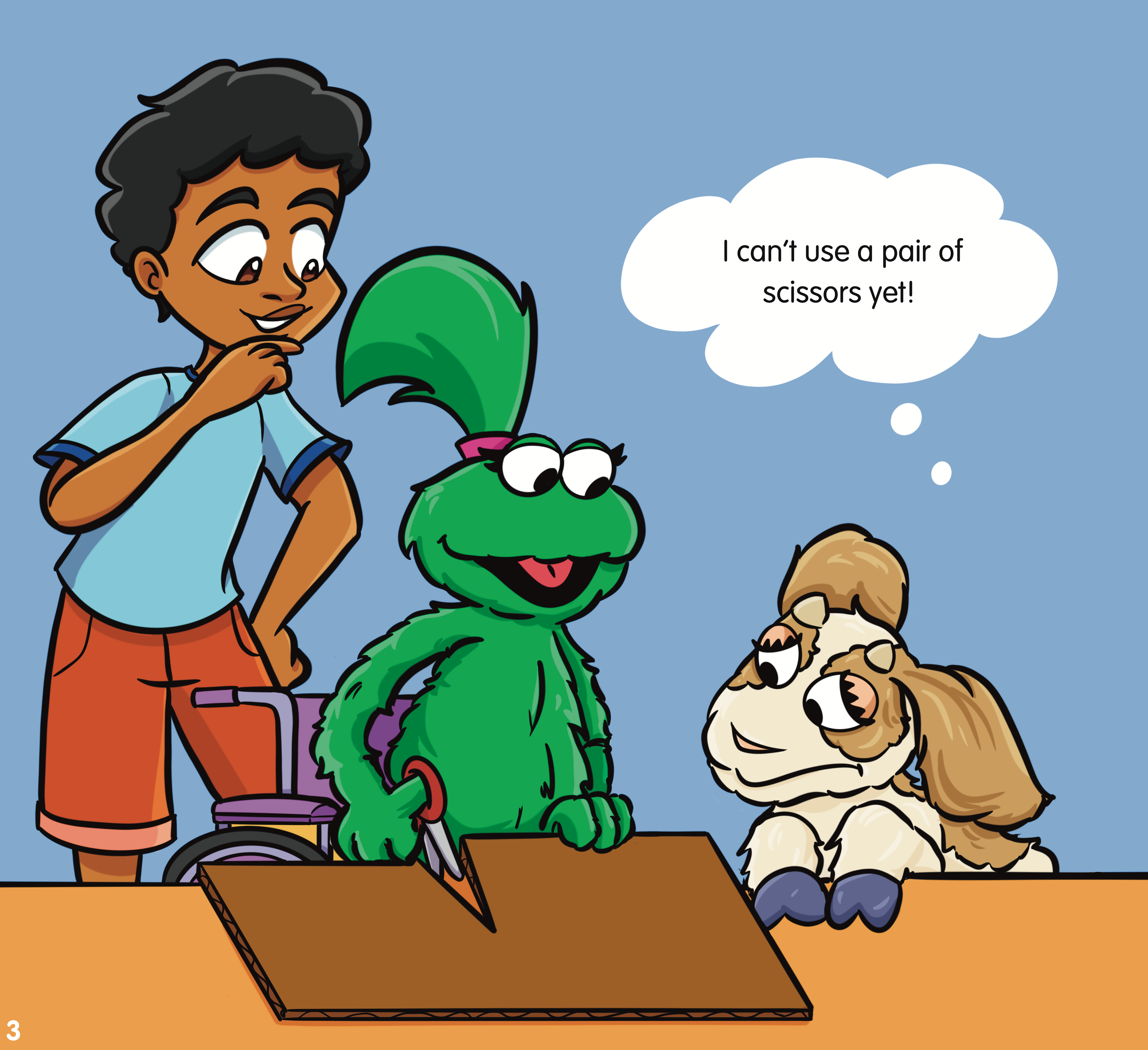 "Children may not be able to perform certain tasks yet, and that is okay. It is important to remind them of all the other things they can do and to encourage them to remain positive and to continue trying. In this storybook, the Ahlan Simsim friends share tasks they may not be able to accomplish yet, while highlighting other things they are capable of. The story ends with a reminder to children that they can achieve their goals with time, patience, practice, and a little help."